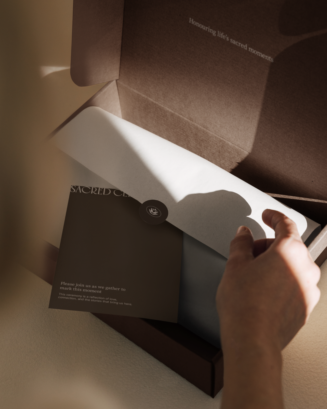 Rather than relying on familiar celebrancy or wedding tropes, the brand leans into restraint and symbolism, allowing emotion to lead. Across the website, packaging, and marketing materials, the identity feels cohesive, calm, and deeply considered.