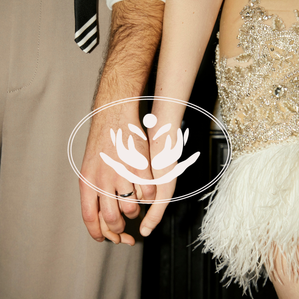 The visual identity was designed to feel warm, intentional, and contemporary. A modern, refined typeface anchors the logo, offering clarity and confidence while keeping the brand grounded and approachable. Paired with this is a custom brand mark that draws on natural forms and symbolism. The mark represents hands holding, two people coming together, and the idea of connection within nature, reflecting the role of ceremony in marking life’s most meaningful moments.